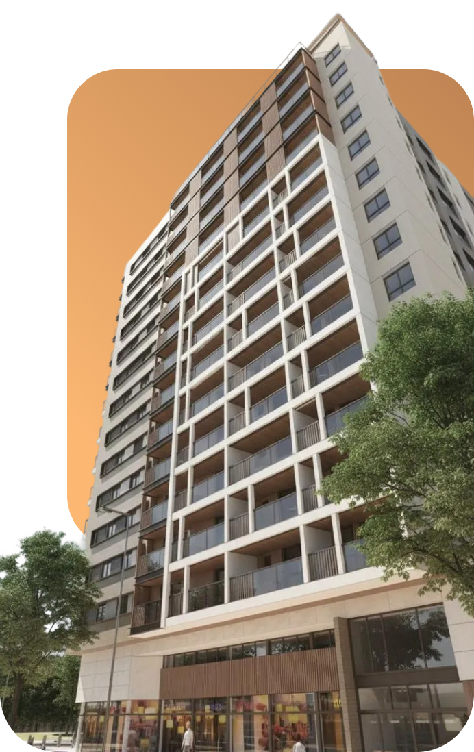 54 apartamentos modernos e 04 lojas.