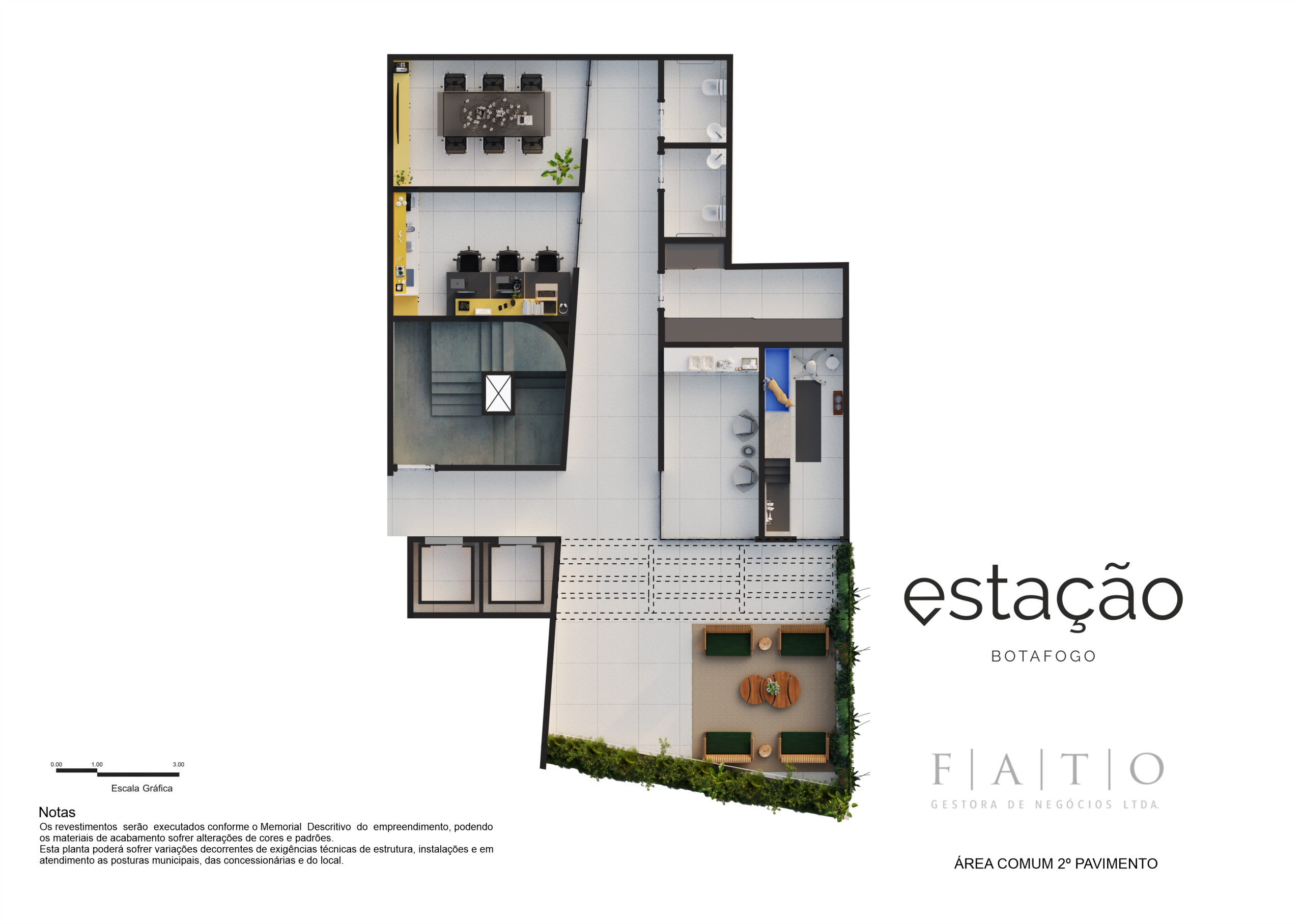 Espaço de amenities com Offices, Pet Care, Lavanderia, Coworking, Área de convivência e Minimarket.
